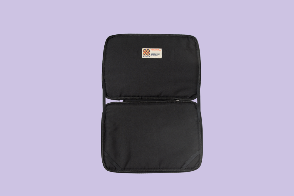 - Garters on bottom corners to keep your laptop secure